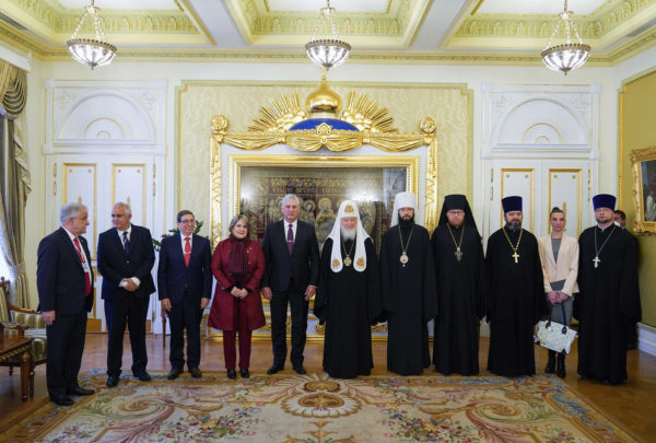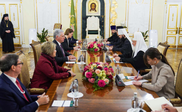 Обратившись с сердечным приветствием к высокому гостю, Его Святейшество отметил: «Радуюсь тому, что содержательный и очень положительный в эмоциональном плане контакт, который установился с руководством Вашей страны, еще начиная с нашей первой встречи с покойным ныне команданте Фиделем Кастро, продолжается и сегодня. Можно сказать, что установилась добрая традиция взаимоотношений между Русской Церковью и Островом свободы».