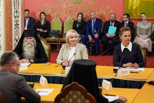 Во встрече приняли участие: председатель фонда «Защитники Отечества» А.Е. Цивилева; председатель Синодального отдела по церковной благотворительности и социальному служению, руководитель Патриаршей гуманитарной миссии епископ Верейский Пантелеимон; председатель Синодального отдела по взаимоотношениям Церкви с обществом и СМИ В.Р. Легойда; главный врач Центральной клинической больницы святителя Алексия, митрополита Московского А.Ю. Заров; насельник Высоко-Петровского ставропигиального монастыря, член Наблюдательного совета фонда «Защитники Отечества» инок Киприан (Бурков); заместитель председателя фонда «Защитники Отечества» М.Ф. Костюк; референт Управления Президента РФ по общественным проектам В.П. Бочков.
