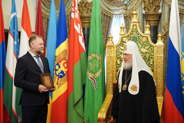 В благословение на труды Предстоятель Русской Православной Церкви вручил гостям икону благоверного князя Димитрия Донского.