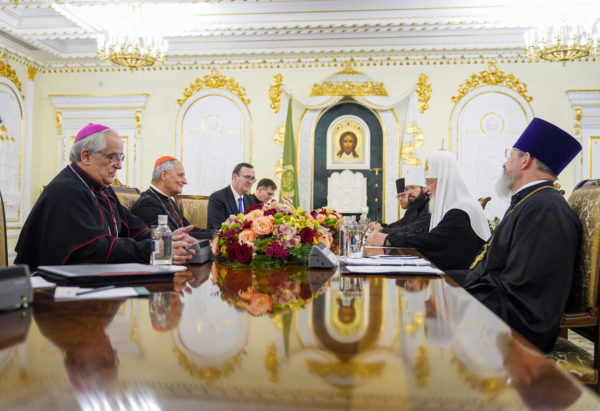 В свою очередь, кардинал Маттео Дзуппи передал Патриарху Московскому и всея Руси Кириллу приветствие от Папы Римского Франциска.