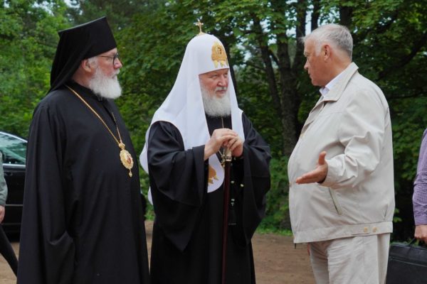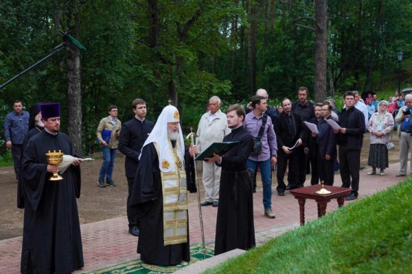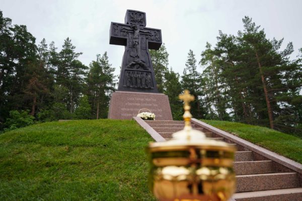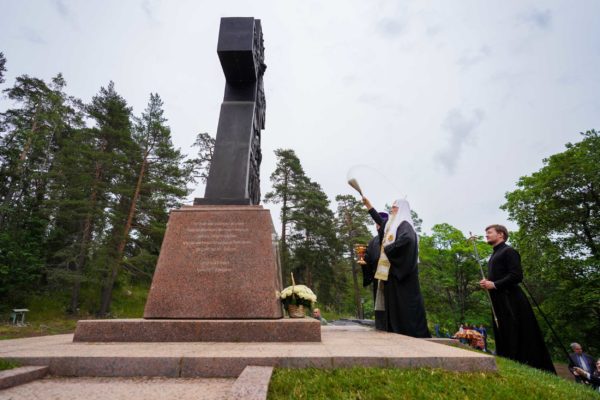 Святейший Патриарх Кирилл освятил поклонный крест в Большой Никоновской бухте на Валааме
