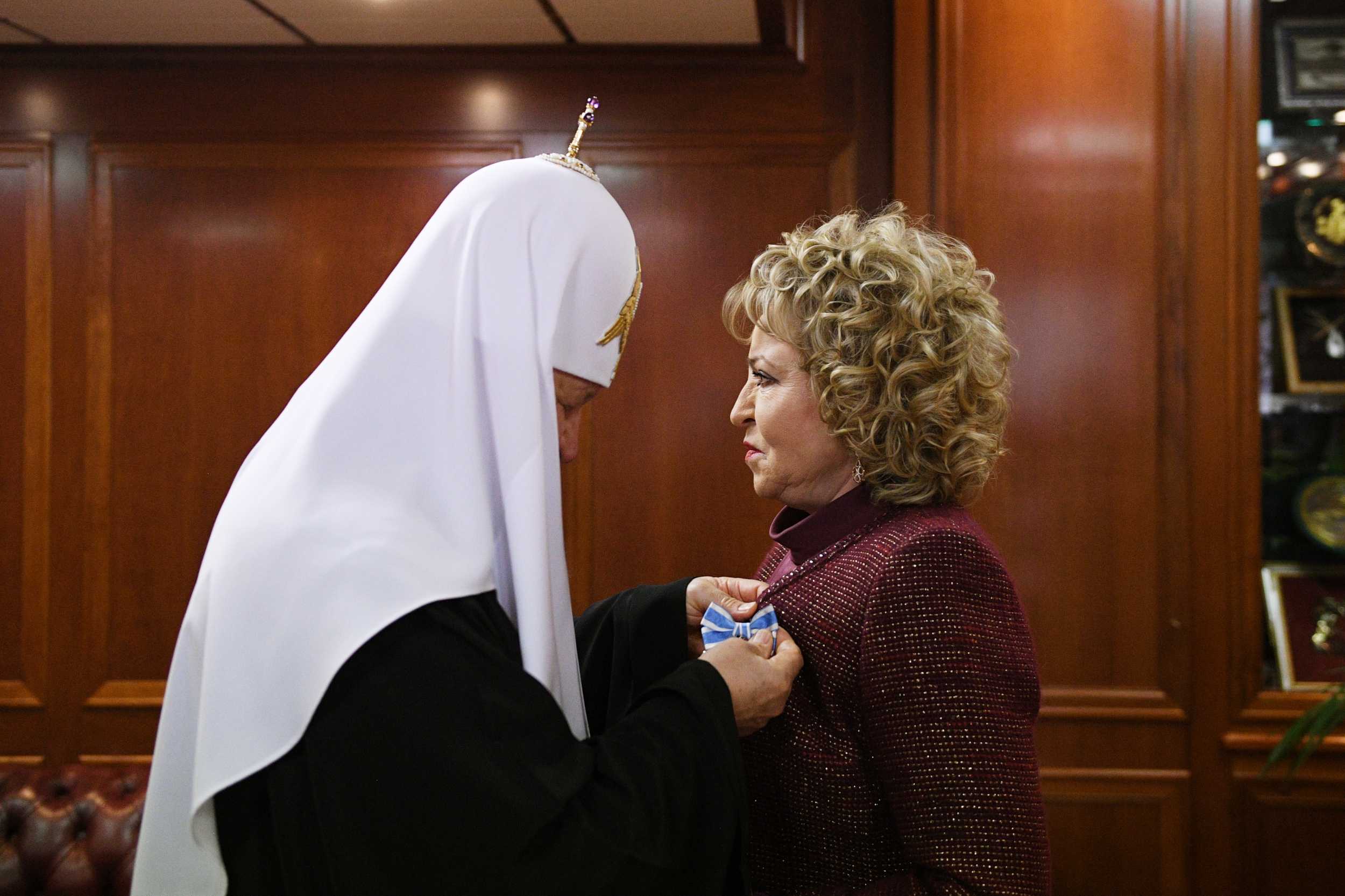 Предстоятель Русской Православной Церкви поздравил В.И. Матвиенко с 70-летием со дня рождения и вручил ей орден святой равноапостольной княгини Ольги III степени.