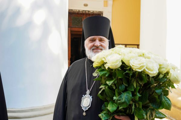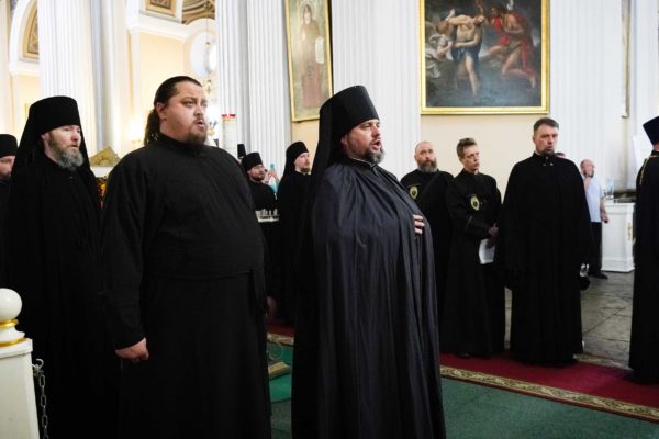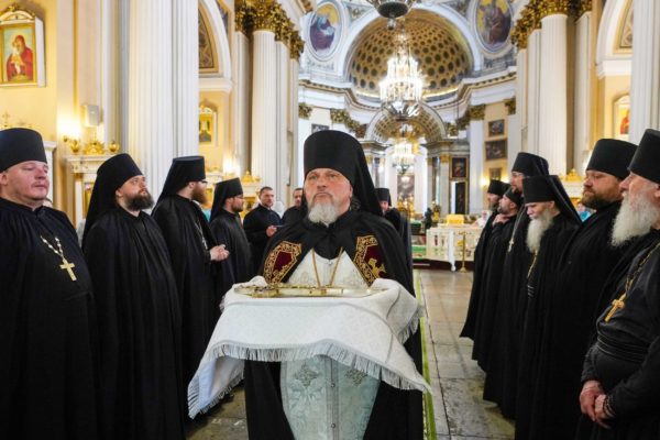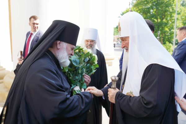 У врат Троицкого собора Лавры Святейшего Владыку встречал наместник обители епископ Кронштадтский Назарий с братией монастыря.