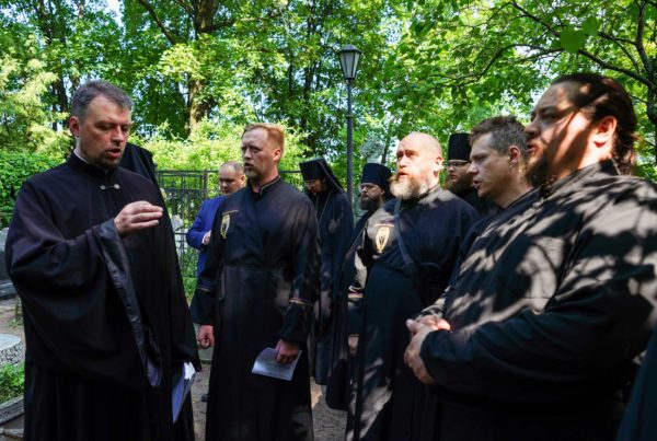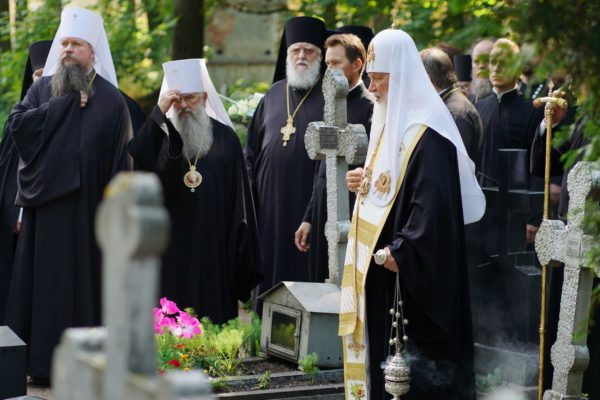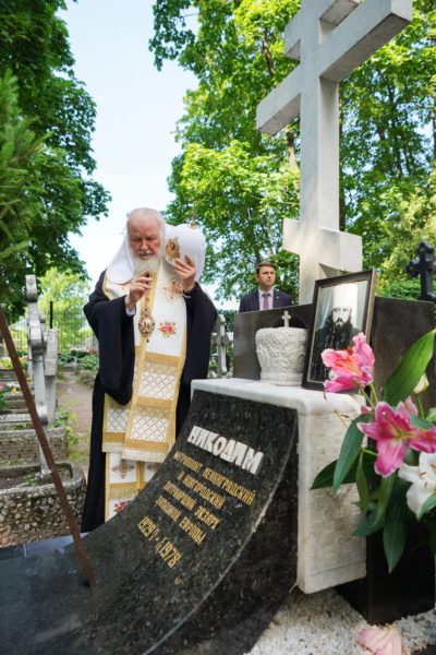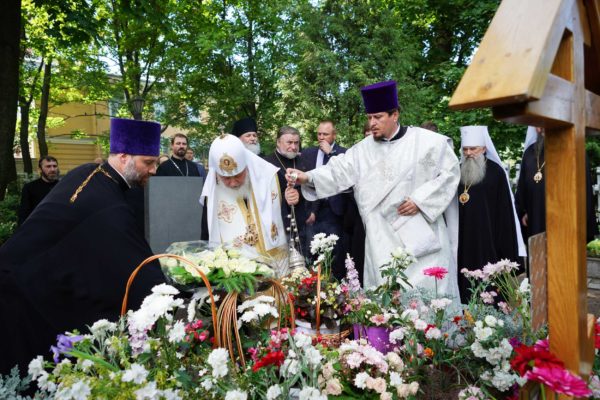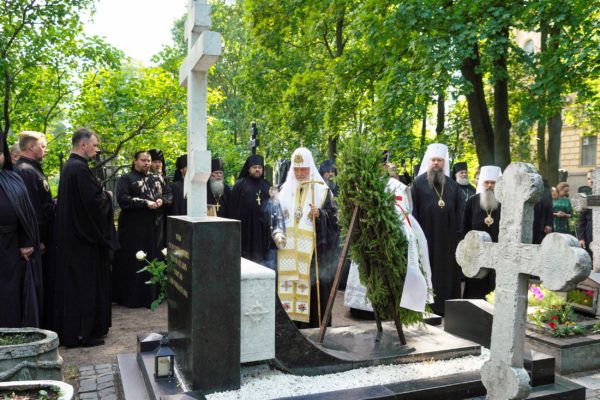 Затем на Никольском кладбище Александро-Невской лавры Святейший Владыка совершил литию на могиле своего духовного наставника приснопамятного митрополита Никодима (Ротова).