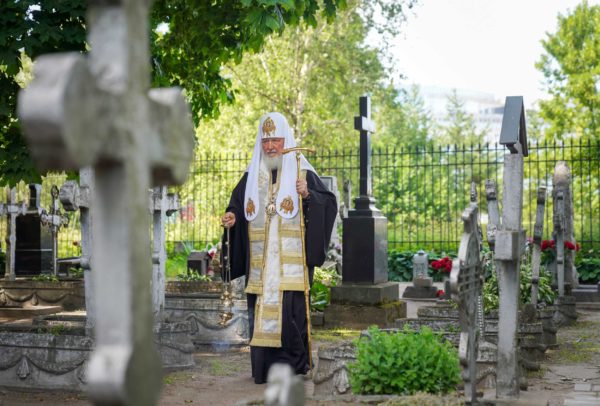 Святейший Патриарх Кирилл посетил Никольское и Большеохтинское кладбища Санкт-Петербурга