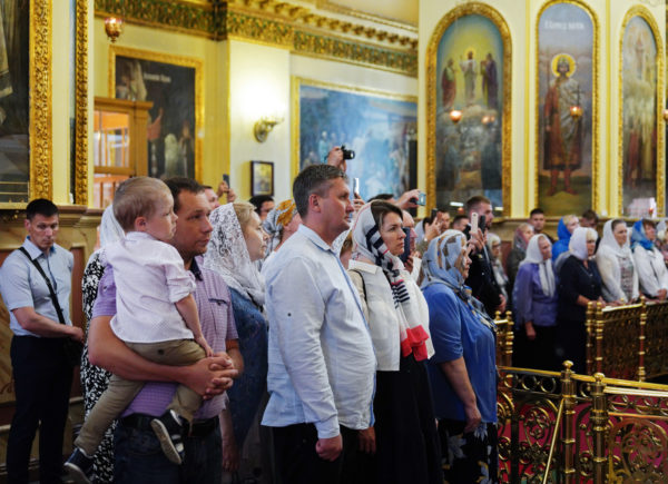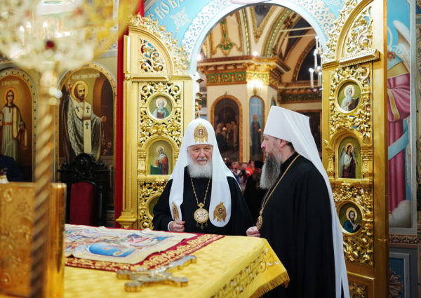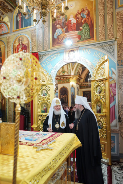 «Мы прошли через разные эпохи, среди них были очень трудные, но народ наш пронес веру православную. Сегодня мы служим в других соборах, и вера православная совсем не на обочине жизни общественной, но ведь никто не знает, что ждет впереди каждого из нас. И потому хранить веру в сердце, приумножать ее, воспитывать детей, внуков — это самая главная задача каждого православного человека, отца и матери, бабушки и дедушки, всех тех, кто прикасается к воспитанию детей и молодежи. Помните: ваша главная задача, чтобы ваши дети и внуки стали верными Церкви Православной и державе Российской, а эти два понятия неотделимы друг от друга. Поэтому призываю благословение Божие на всех, владыка митрополит, на духовенство вверенной Вам митрополии, на клир сего святого храма и на тех, кто собрался здесь. Радуюсь возможности встретиться со всеми вами. Пусть Господь хранит вас в добром здравии на долгие годы и помогает вам сохранить веру в сердце и передать ее следующим поколениям», — заключил Святейший Патриарх Кирилл.