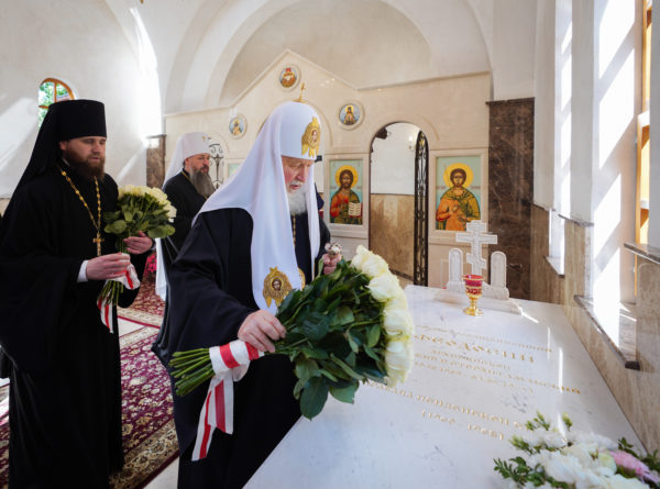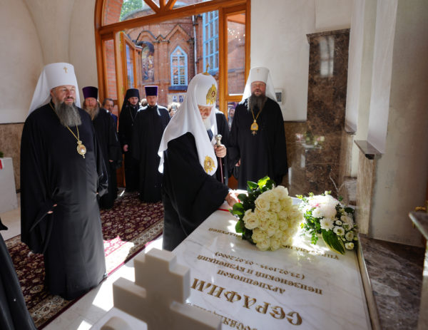 Затем Святейший Патриарх Московский и всея Руси Кирилл посетил место погребения архиепископа Серафима (Тихонова) и архиепископа Феодосия (Погорского) за алтарем Успенского собора. Святейший Владыка возложил цветы и совершил молитву. Была возглашена «Вечная память».