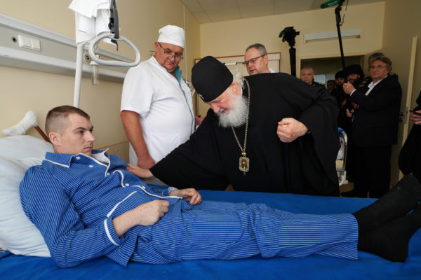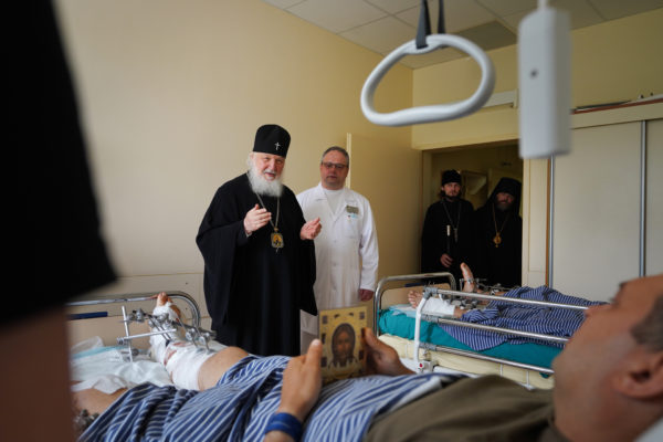 «С особым чувством я посещаю сегодня это медицинское учреждение, которое известно не только по всей России, но, наверное, и во многих других странах мира. Здесь оказывается помощь защитникам Отечества, и значение этого госпиталя особенно возрастает, когда защитники Отечества, осуществляя свой долг, следуя присяге, подвергаются рискам потерять здоровье, получить травмы, которые будут сопровождать их всю жизнь. Поэтому лечение, которое проходят здесь наши военнослужащие, — это не просто лечение физическое. Проникаясь пониманием того, что означает для военнослужащего его служба, исполнение присяги, осознаешь, насколько важно духовное воздействие на человека, находящегося в этих стенах. Очень надеюсь, что наше духовенство достойно осуществляет пастырское попечение и о сотрудниках, и о пациентах — о всех тех, кто нуждается в духовной поддержке.