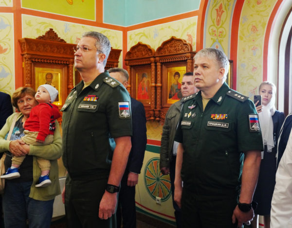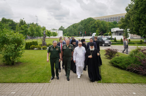 Святейшего Владыку на территории госпиталя встречали: заместитель министра обороны РФ Т.В. Иванов; начальник Главного медицинского управления Министерства обороны РФ Д.В. Тришкин; начальник ФГБУ «Национальный медицинский исследовательский центр высоких медицинских технологий — Центральный военный клинический госпиталь имени А.А. Вишневского» Министерства обороны РФ, генерал-майор медицинской службы, заслуженный врач РФ, доктор медицинских наук А.В. Есипов; епископ Одинцовский и Красногорский Фома; секретарь Святейшего Патриарха по Московской области, секретарь Одинцовского епархиального управления иерей Дионисий Казанцев; руководитель Юридической службы Московской митрополии, секретарь Епархиального совета Одинцовской епархии иерей Василий Лосев; председатель комиссии по взаимодействию с Вооруженными силами Одинцовской епархии иерей Олег Мирошников; настоятель храма святителя Луки (Войно-Ясенецкого), архиепископа Крымского, на территории госпиталя священник Стахий Захмаревич.