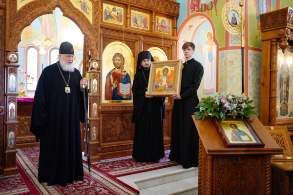 В дар госпиталю Святейший Патриарх Кирилл передал икону великомученика Георгия Победоносца, для пациентов, проходящих лечение в госпитале, — подарочные наборы, включающие икону Христа Спасителя, Евангелие от Марка и Молитвослов православного воина, а всем присутствовавшим — иконки Спаса Нерукотворного с Патриаршим благословением.