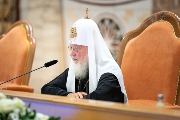 Предстоятель Русской Православной Церкви обратился к участникам собрания с основным докладом.