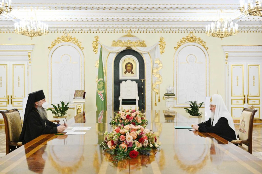 Святейший Патриарх Кирилл провел рабочую встречу с председателем Синодального отдела по взаимодействию с Вооруженными силами и правоохранительными органами