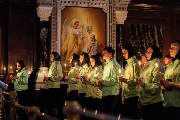 Богослужебные песнопения исполнил Патриарший хор Храма Христа Спасителя (регент — И.Б. Толкачев).