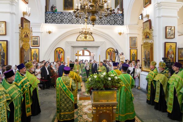 Вечером 4 июня 2025 года, в канун дня памяти преподобной Евфросинии, игумении Полоцкой (1173), в ходе Первосвятительского визита в пределы Белорусской Православной Церкви Святейший Патриарх Московский и вся Руси Кирилл совершил утреню всенощного бдения в Свято-Духовом кафедральном соборе г. Минска.