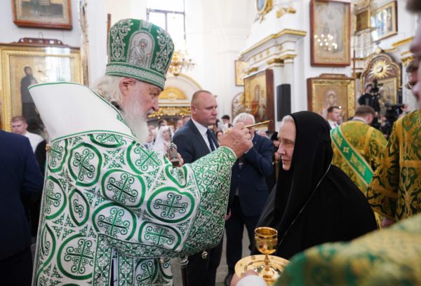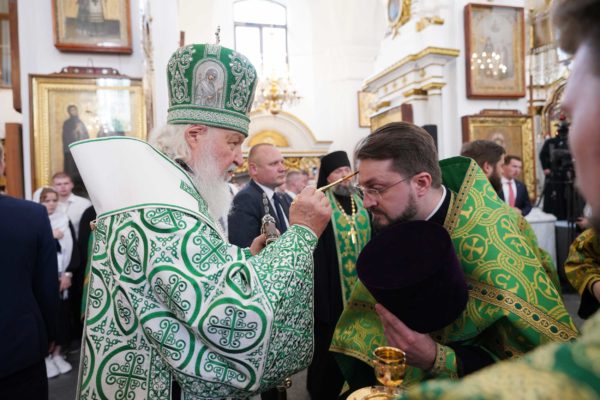 После полиелея Святейший Патриарх Кирилл совершил помазание верующих.