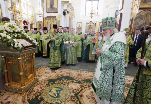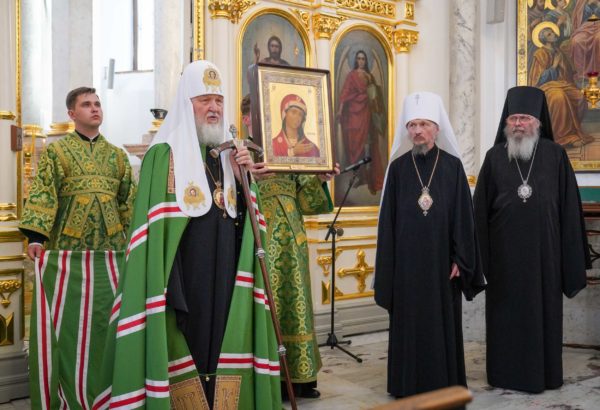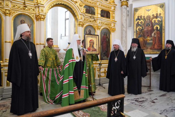 В память о совершенном богослужении Предстоятель Русской Церкви передал в дар кафедральному собору образ Божией Матери «Невская Скоропослушница». Вручая образ, Святейший Владыка сказал: