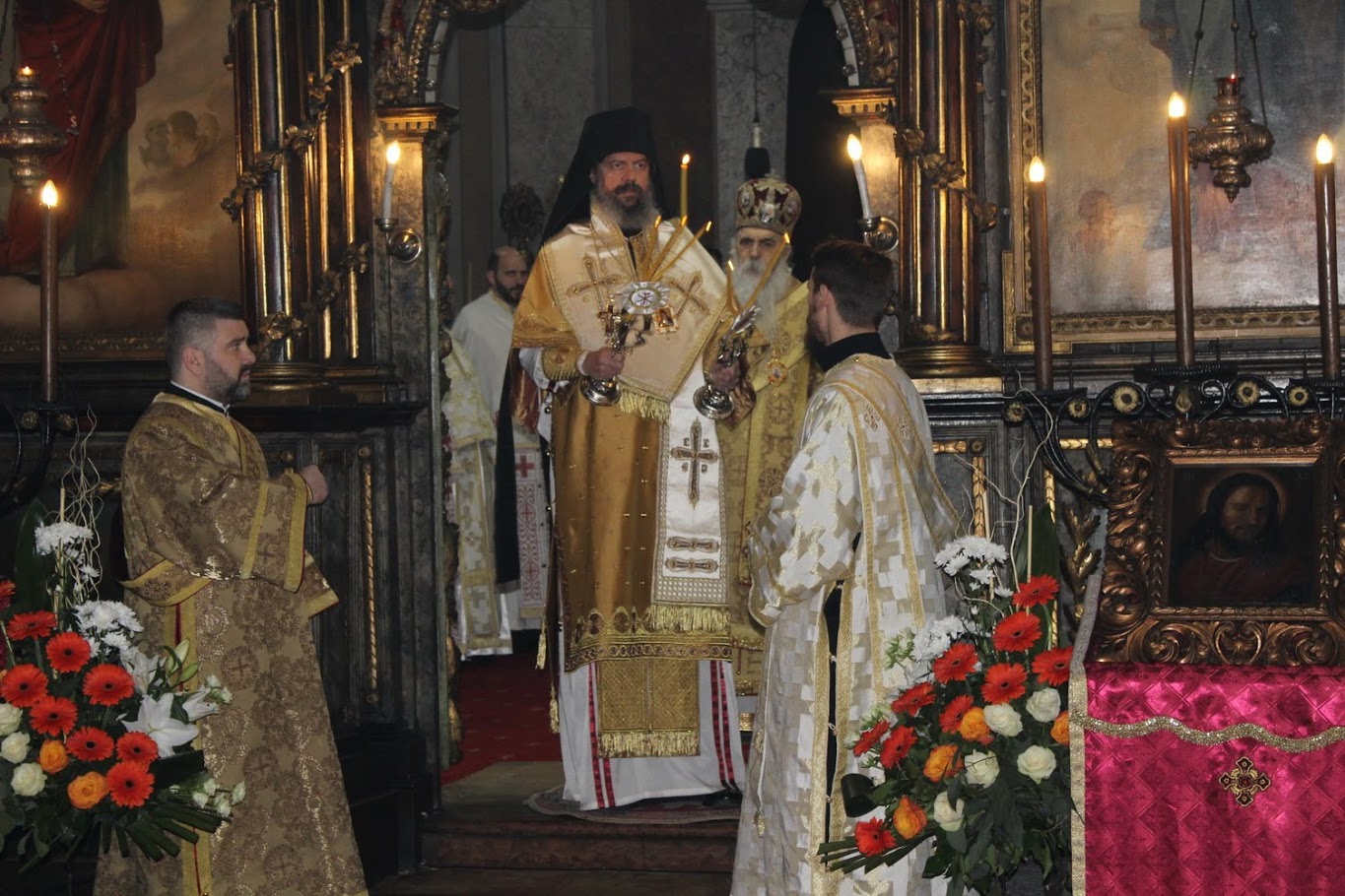 -Без Светог Григорија Богослова и његовог чистог и дубоког исповедања православне вере, Црква би се, у оном времену, тешко изборила против многобројних јереси. Слично је са Светим Василијем Великим, с тим што је он још имао и друго стваралаштво на пољу монашког живота, као што је и Свети Григорије Богослов био и црквени песник, а имао је и друге дарове. Свети Јован Златоуст је био изванредни пастир Цркве, проповедник, али не мање и дубоки теолог. На нама је, прослављајући ове духовне горостасе наше свете Цркве, да послушамо савет апостола Павла и да се угледамо на њихов живот, да покушамо и ми да сведочимо лепоту Јеванђеља Христовога, навео је Епископ бачки, честитајући славу братству Алмашког храма, кумовима, парохијанима и свим Новосађанима.