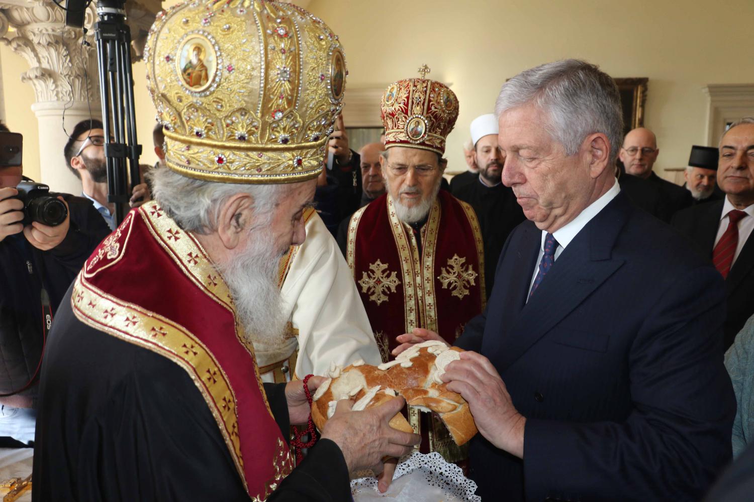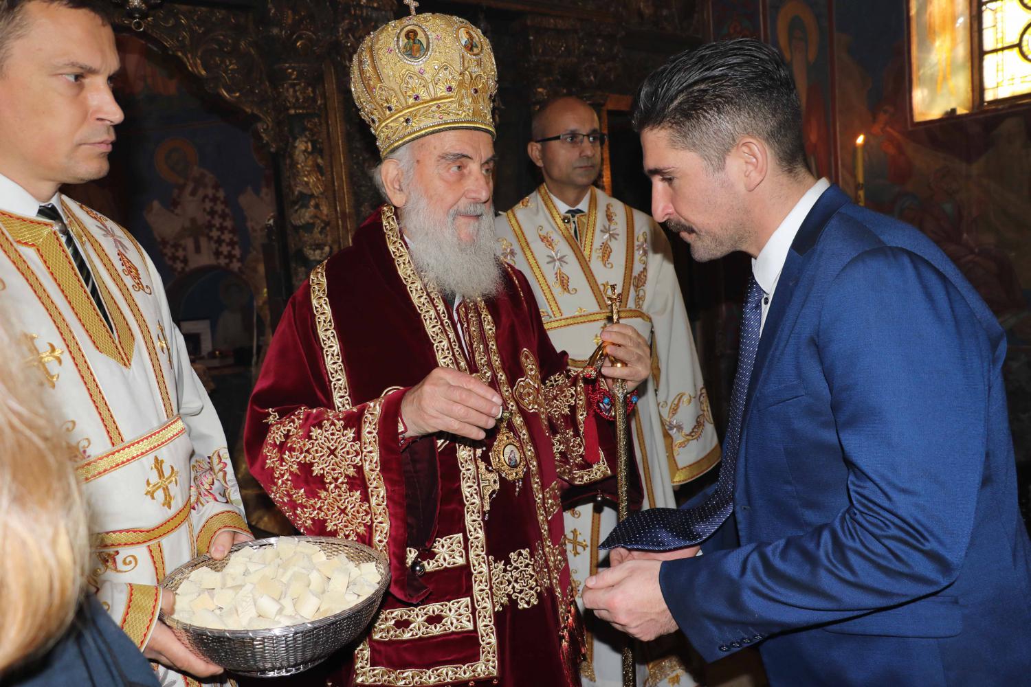 Његовој Светости током свете Литургије саслуживали су протојереји-ставрофори Владимир Вукашиновић – архијерејски намесник београдски први, и Божо Бакајлић – архијерејски намесник земунско-новобеоградски, протођакон Стеван Рапајић и ђакон Владимир Руменић.