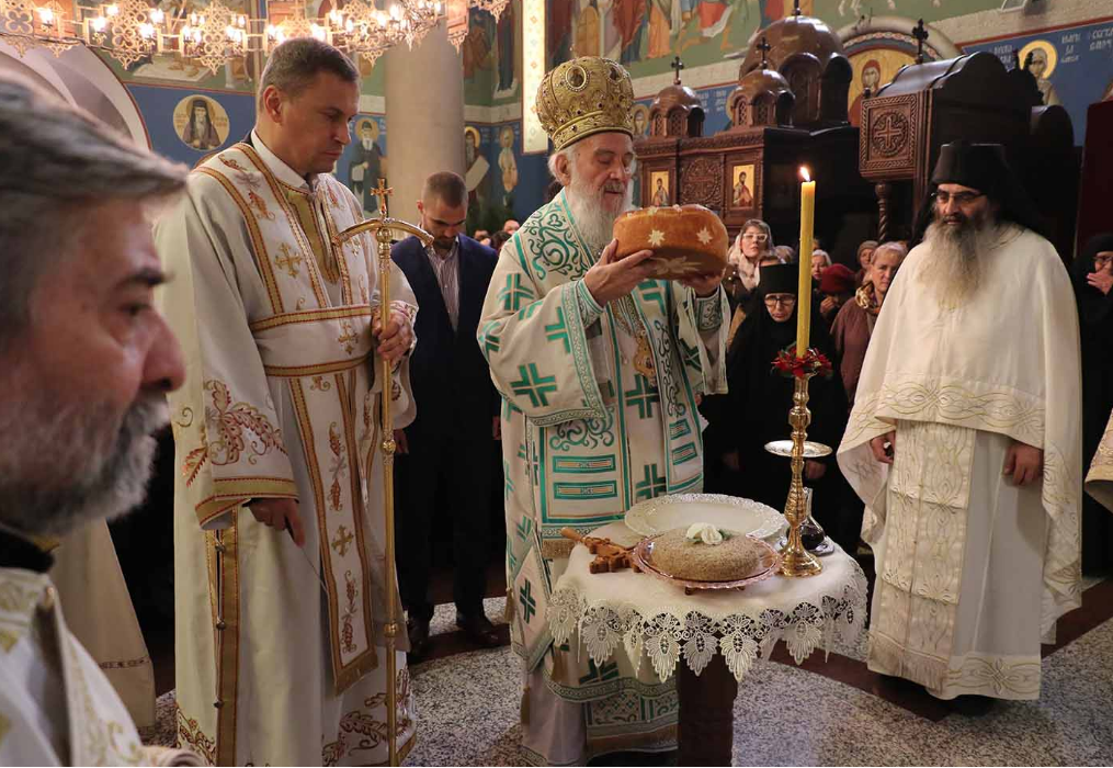 Његова Светост је, заједно са високопреподобном игуманијом манастира Ваведења мати Анастасијом, сесринством и домаћином славе г. Николом Чукићем и његовом породицом, преломио славски колач у присуству многобројног благочестивог народа. Појао је хор Мелоди под вођством гђе Дивне Љубојевић.