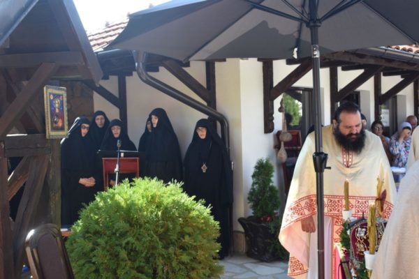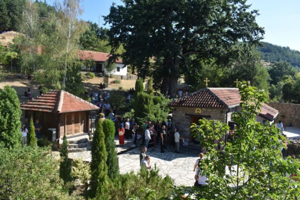 Предање говори да је на месту данашњег манастира постојао манастир подигнут у XIV веку, у време Светог краља Милутина. Ова претпоставка поткрепљена је чињеницом да у близини постоје темељи цркве Вазнесења Господњег из истог периода. У Пчињском поменику из XIV века манастир се помиње као метох манастира Преподобног Прохора Пчињског. Као и сваке године, манастирску порту испунили су многобројни верници који су приступили светом Причешћу и поклонили се чудотворној икони Светог Пантелејмона која се чува у тој светињи. Уследила је литија, а затим је освећен славски колач. Присутнима је митрополит Пахомије беседио о животу и подвигу Светог Пантелејмона и његов пример милосрђа, верности Христу и несебичне љубави према ближњима.