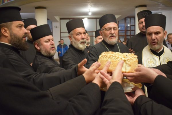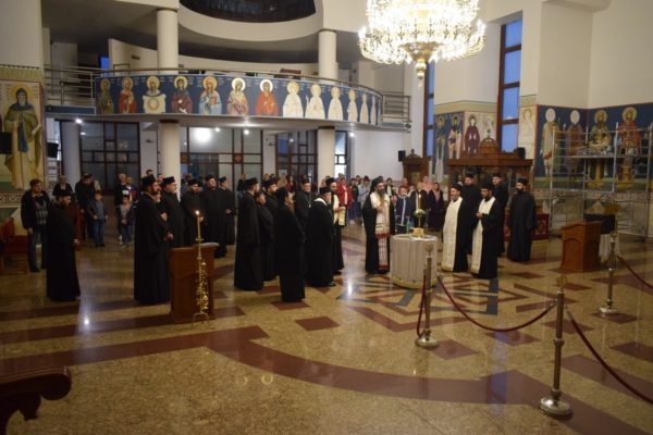 После читања акатиста Светом Нектарију Егинском, Његово Високопреосвештенство Митрополит нишки г. Арсеније осветио је славске дарове и пререзао славски колач. Братство храма Светог Василија Острошког преузело је организацију прославе крсне славе нишког свештенства за наредну годину.