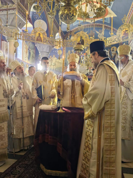 Након читања из светог Јеванђеља, беседом се обратио Митрополит крушевачки Давид истакавши да је Господ живот наш, надање наше, и пуноћа наша. Сцена у јеванђељу показује Господа као дародаваца, а дарови Његови увек живот значе. Бог не захтева ништа од нас, никакве квалификације, само узимање учешћа у догађају хлеба и вина – односно Тела и Крви. Господ је стално са нама, истакао је Митрополит Давид.