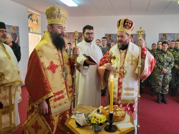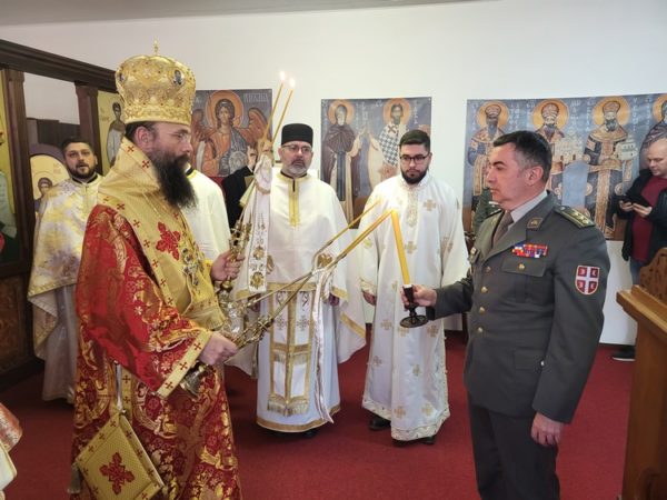 Светом Литургијом је началствовао Његово Високопреосвештенство Митрополит тимочки г. Иларион коме су саслуживали Преосвећени Епископ липљански и војни г. Доситеј; протојереји Слађан Влајић и Радоје Мијовић; јереји Александар Миловановић, Иван Ганић, Срђан Василијевић и Урош Живановић; као и архиђакон Илија. У евхаристијском сабрању учествовао је пуковник Саша Тодоров, командант Тимочке бригаде.