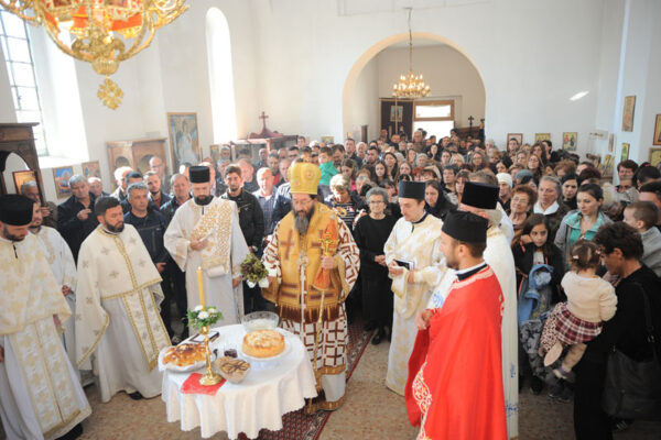 После свете Литургије уприличена је трпеза љубави, за време које се бираним речима епископу Јустину и верном народу обратили бивши и садашњи пароси протојереј Србољуб Стојковић и јереј Предраг Радојевић.