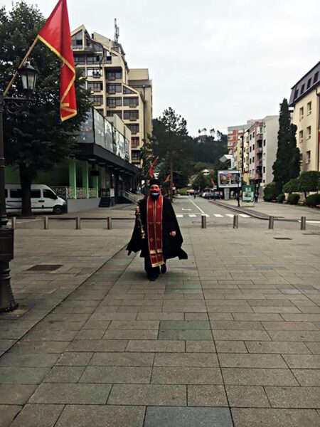 Због важећих мера НКТ-а отказана је традиционална петровданска свенародна литија, па је свештенство у циљу сузбијања корона вируса обавило молитвени ход и кађење улицама града уз максимално поштовање прописаних здравствених мера.
