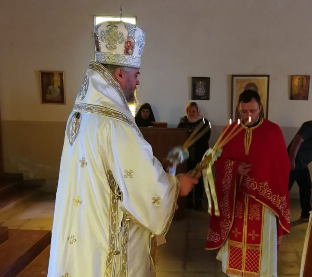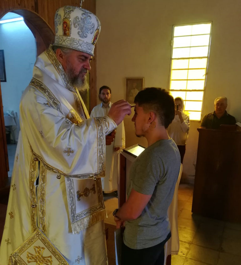 У току Литургије, миропомазањем је примљен у православље Габријел Дијаз. Владика Кирило се присутнима обратио на шпанском језику, честитао храмовну славу и надахнуто поучио сабране да се Габријел заправо вратио вери отаца која има у себи пуноћу истине.