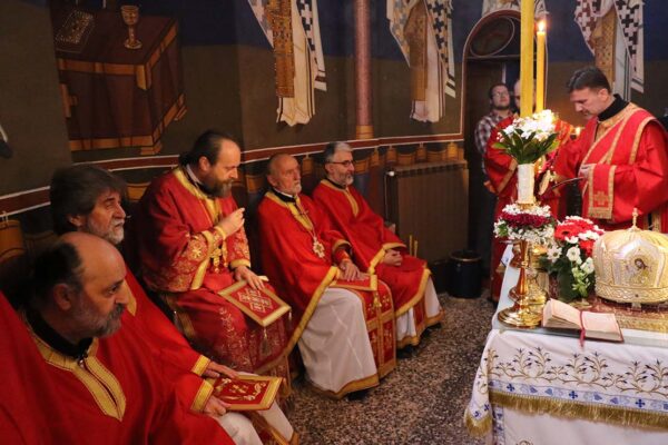 Саслуживало је свештенство Архиепископије београдско-карловачке. После причешћа, владика Стефан је осветио и преломио славски колач са братством храма и благочестивим народом. Славу је својим појањем увеличао хор при храму Светог великомученика Георгија у Старој Бежанији, под изузетним вођством диригента гђе Ане Ивановић.
