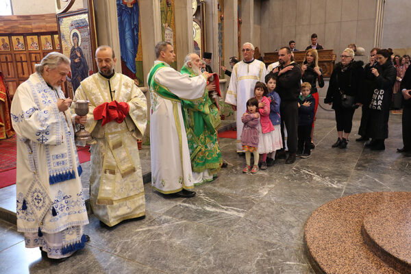 Током славске трпезе у Парохијском дому, старешина храма Светог апостола и јеванђелисте Марка протојереј-ставрофор Трајан Којић је захвалио Његовј Светости Патријарху на празничној служби у храму и свима који помажу свети храм.
