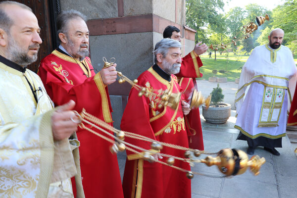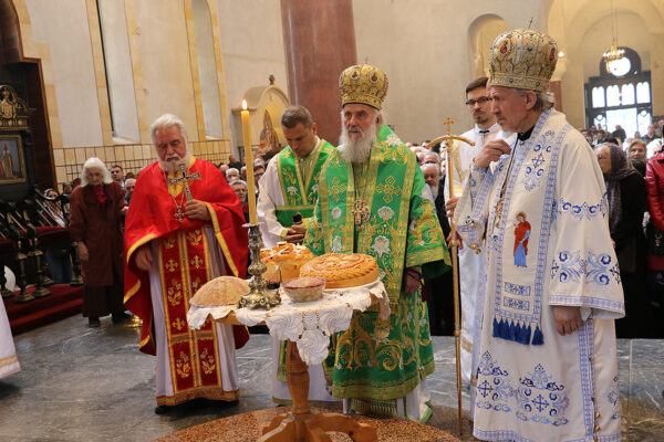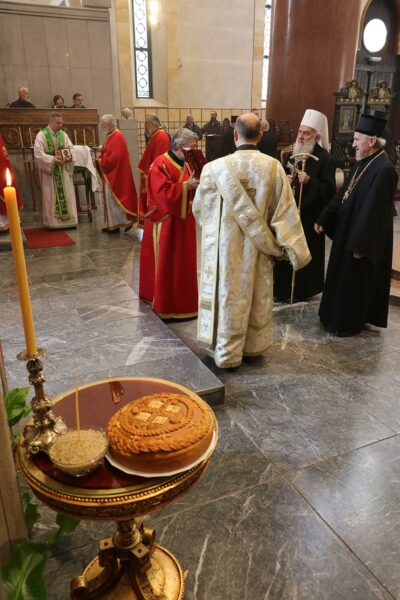 Патријарх Иринеј је после литије око храма, преломио славски колач кума славе г. Братислава Петковића. Славски колач који је принела Општина Палилула преломио је Епископ канадски Митрофан. Кумство храмовне славе за наредну годину узео је г. Милорад Рајевић.