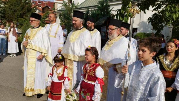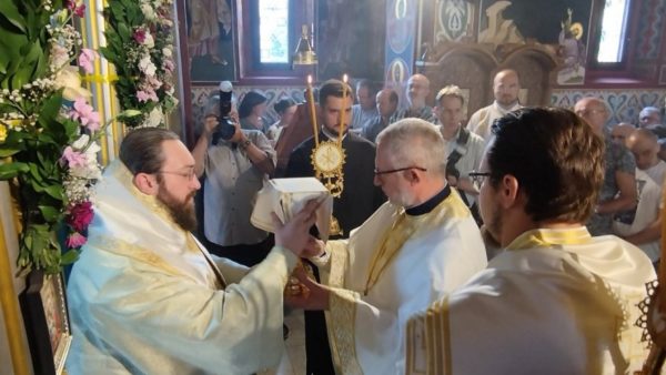 На крају свете Литургије извршен је литијски опход око храма, а затим су освештани славски дарови поводом храмовне славе.
