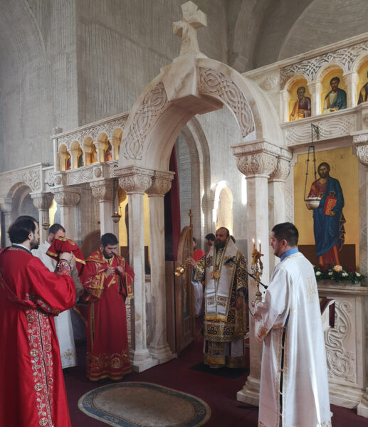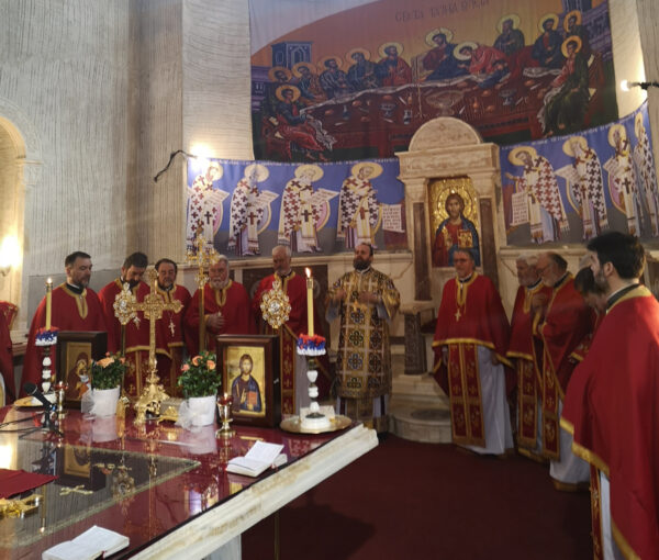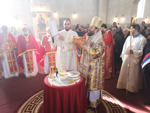 На дан празника у препуном храму Светог Симеона Мироточивог, са благословом Његове Светости Патријарха српског г. Иринеја, свету архијерејску Литургију служио је Преосвећени Епископ ремезијански г. Стефан, викар Патријарха српског.