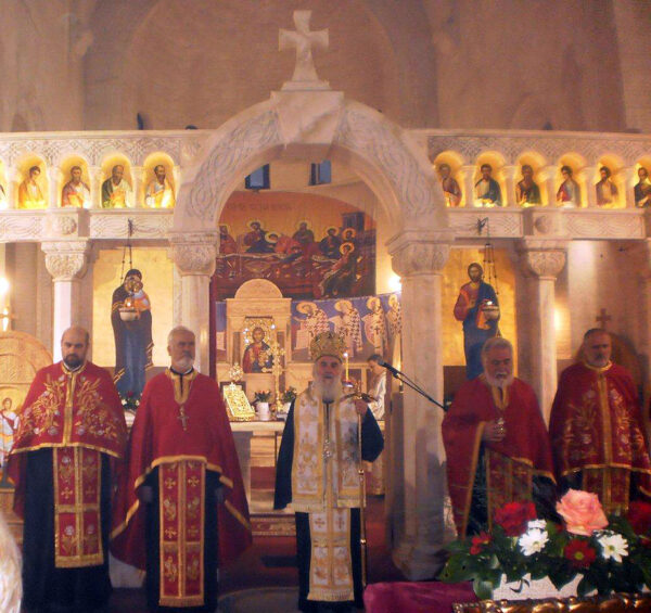 На дан празника у препуном храму Светог Симеона Мироточивог, са благословом Његове Светости Патријарха српског г. Иринеја, свету архијерејску Литургију служио је Преосвећени Епископ ремезијански г. Стефан, викар Патријарха српског.