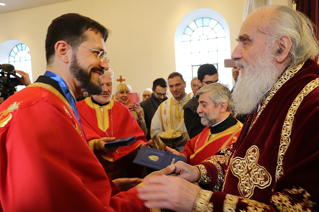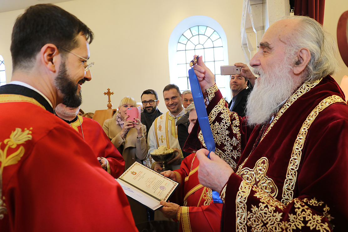 Саслуживали су протојереји-ставрофори Бранко Топаловић и Никола Трајковић, јереји Владимир Марковић и Василије Војводић, протођакон Стеван Рапајић и ђакони Петар Дабић и Драган Танасијевић. По освећењу те обновљене светиње, Његова Светост је одликовао старешину храма оца Василија Војводића чином протојереја, док је ђакона др Петра Дабића, кардиолога ИКВБ Дедиње, Патријарх одликовао чином протођакона.