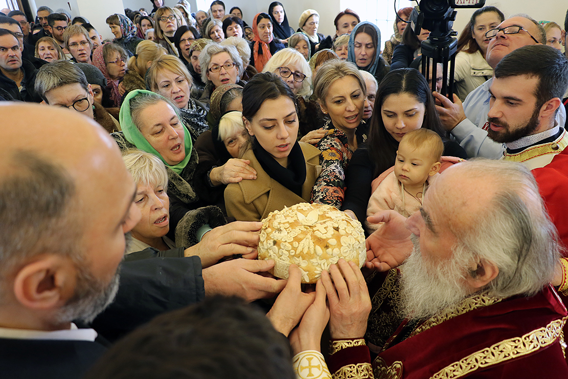 Његова Светост Патријарх српски г. Иринеј служио је 14. фебруара 2019. године свету архијерејску Литургију у храму Светог мученика Трифуна на Топчидерском гробљу.