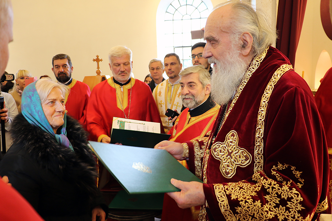 Високо црквено признање орден Светог краља Милутина патријарх српски г. Иринеј уручио је г. Георгију Крстаноском, архитекти из Београда, за његово несебично залагање и пружање велике стручне и материјалне помоћи приликом генералне обнове храма Светог Трифуна. Протођакон др Петар Дабић одликован је орденом Светог Саве трећег степена за његово несебично залагање и велику финасијску помоћ за генералну обнову храма Светог Трифуна.
