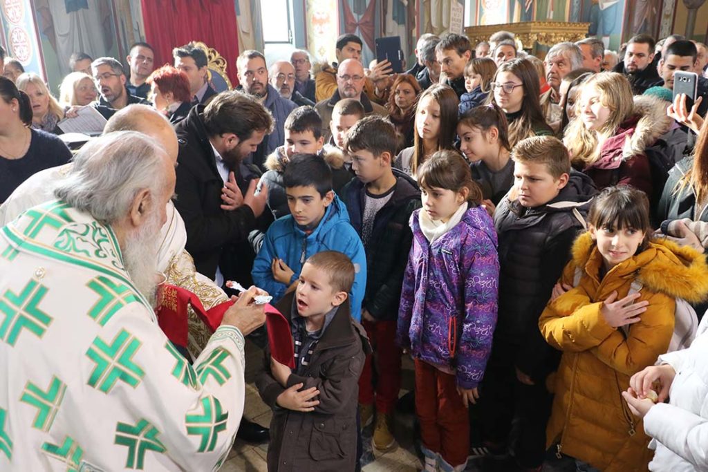 После славског обреда, патријарх Иринеј је надахнуто говорио о чудесном и мученичком животу Светог краља Стефана подсетивши да се његово чудотворно и нетљено тело налази у његовој задужбини у манастиру Високи Дечани у Метохији, који је понос наше културе и историје.