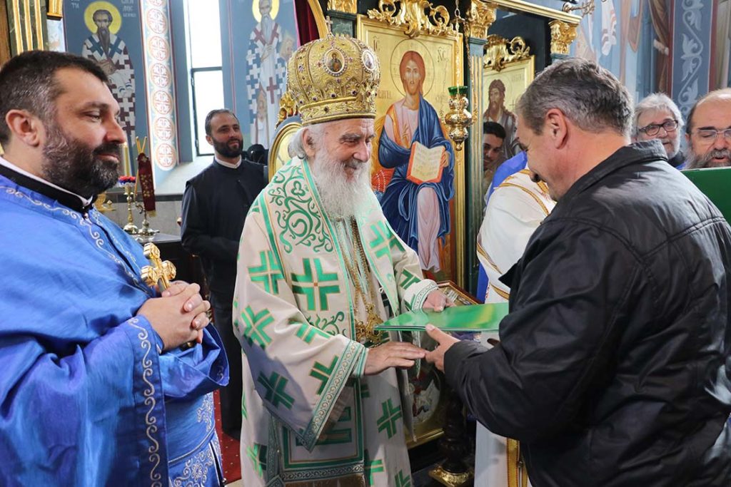 Патријарх је уручио и грамате члановима Црквене управе господи Илији Љубичићу, Миодрагу Јелићу, Зорану Павловићу, Петру Милеуснићу, Милосаву Влајковићу, Слободану Златановићу, Миленку Милановићу, као и добротвору г. Горану Мишићу из Железника.
