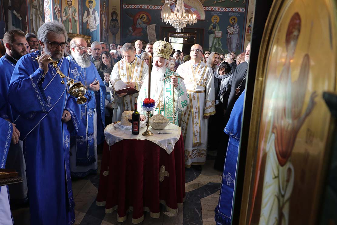 После славског обреда, патријарх Иринеј је надахнуто говорио о чудесном и мученичком животу Светог краља Стефана подсетивши да се његово чудотворно и нетљено тело налази у његовој задужбини у манастиру Високи Дечани у Метохији, који је понос наше културе и историје.