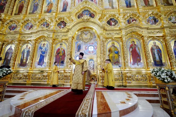 Но при всем этом мы должны помнить, что враг рода человеческого силен. Искушения, соблазны посещают каждого человека. Кто-то не имеет возможности сопротивляться этим соблазнам, — а их множество и в светской, да и в церковной жизни, — когда враг рода человеческого подталкивает к плохим мыслям, плохим словам, а иногда и к плохим действиям. И очень важно, когда мы попадаем в полосу таких искушений, вспоминать о великой духовной истории нашего народа, его героических подвигах. Вспоминать и о том, что даже в это непростое время мы все являемся свидетелями освящения этого величественного собора как видимого знака живой веры русских людей здесь, на севере страны нашей. И пусть Господь помогает всем нам и дальше идти вперед, сохраняя веру в сердце, совершая добрые дела, к которым Господь нас призывает, — ибо вера без дел мертва есть (Иак. 2:26), — проявляя внимание, любовь и заботу друг о друге.