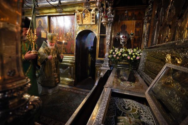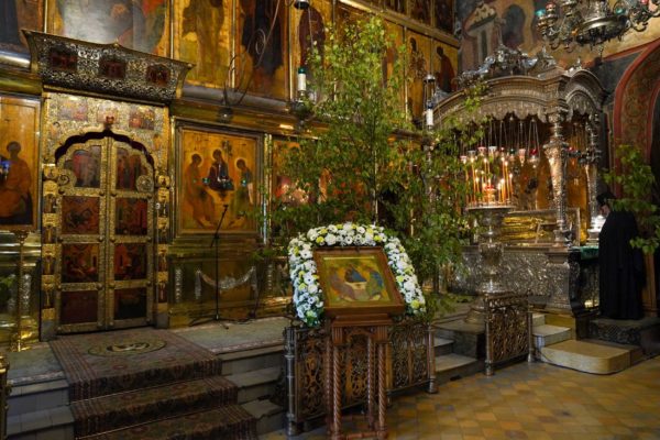 Завтра я не смогу быть в этом храме и вообще в Лавре именно потому, что в Храме Христа Спасителя мы будем молиться перед возвращенным образом Святой Троицы. Затем в течение года чудотворный образ будет находиться в Храме Христа Спасителя, с тем чтобы и москвичи, и гости столицы могли поклониться этой великой святыне. И наконец, Богу содействующу, этот образ вернется сюда, в сей святой храм, на свое историческое место.