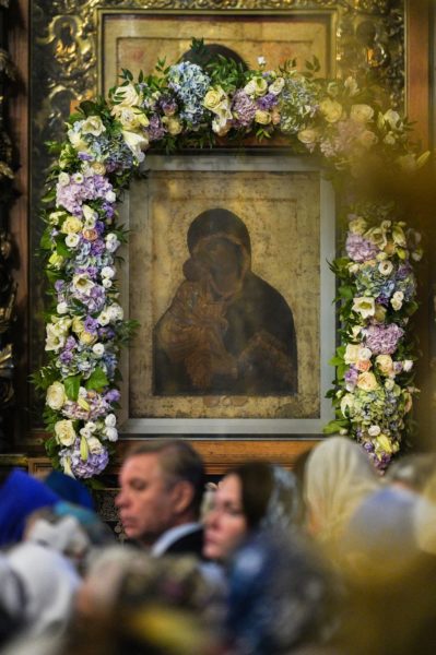 Молясь перед чудотворным образом Донской Божией Матери, вспоминая великие героические события нашей национальной истории, связанные с борьбой нашего народа за свободу и независимость, будем достойны наших великих предков. Будем и в нынешних условиях так же крепко надеяться на Покров Пречистой Богоматери, так же возносить к Ее образу свою горячую молитву, так же любить свое Отечество и так же быть готовыми защитить его, если это потребуется. И верим, что Господь будет с нами, потому что на нашей стороне правда. Кто-то может удивиться и сказать: а почему так? Ответ простой: потому что мы стараемся жить по правде Божией, по Божиему закону, по заповедям; а если по-человечески, по слабости их нарушаем, то не отказываемся от этих заповедей как основного закона человеческой жизни. И покуда будет так, будет сохраняться Отечество наше, сохраняться независимость и свобода нашего народа.