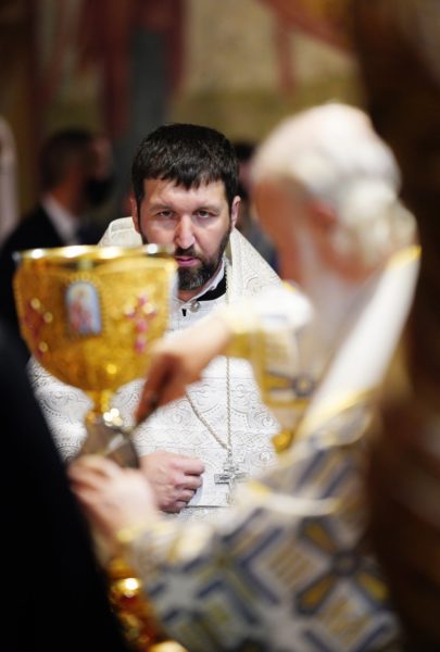 В этом смысле особая миссия сегодня у нашей страны. Мы одни из немногих, кто называет зло злом, а добро добром, кто не дает возможность могущественным пропагандистским силам смешать эти понятия, с тем чтобы человек не различал добро и зло. В самом деле, нам навязывается страшное представление о том, что нет добра и зла, а есть модели человеческого поведения, и каждый имеет право избирать ту модель, которая ему подходит. А если эта модель противоречит Божией воле, Божиему нравственному закону, тому, который Израиль обрел на горе Синай, тому, который был принесен миру Христом Спасителем, — как тогда поступать? На такой вопрос люди воспитанные, интеллигентные не отвечают, а менее воспитанные и интеллигентные прямо говорят, что они о нас думают. Поэтому то, что сегодня происходит, — это действительно часть очень важной борьбы, космической борьбы добра со злом. И дай Бог, чтобы молитвами святых угодников, в земле нашей просиявших, народ наш, несмотря ни на какие соблазны, искушения, влияния, сохранил веру православную, веру в Господа и Спасителя, в Покров Его Пречистой Матери, а значит, способность отличать добро от зла, способность быть по-настоящему свободными людьми. Ибо к свободе вы призваны, братья, говорит апостол (Гал 5:13).