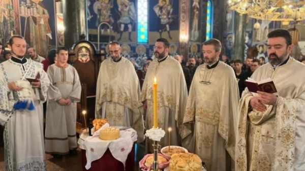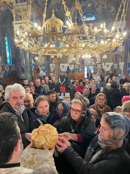 На крају Литургије поводом преславе оца Бранислава и оца Предрага и њихових породица, свештенство је са верним народом преломило славски колач и принесени су славски дарови, а потом се обратио отац Предраг говорећи да данас прослављамо једног од највољенијих светитеља нашег времена – Светог Нектарија Егинског, чудотворца, пастира и утешитеља свих који траже Бога. Његов живот је пример како нас трпљење, молитва и смирење воде ка светости.