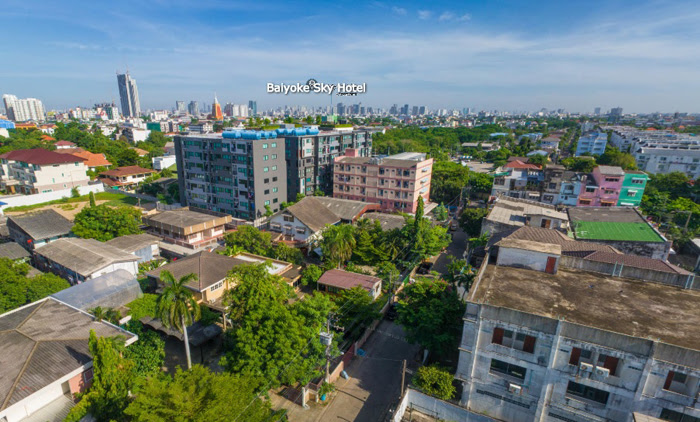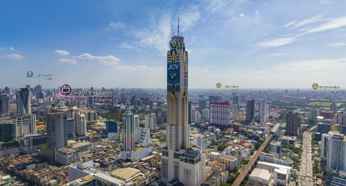 Во время осмотра окрестностей храма появляется активный значок «Baiyoke Sky Hotel», нажав на который можно переместиться в другую часть города, а оттуда, по следующим значкам, осмотреть его еще с нескольких сторон.