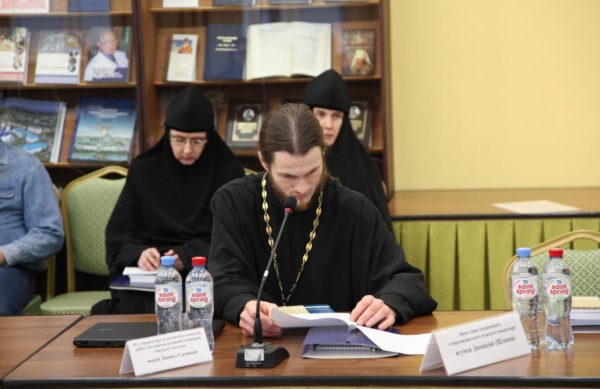 Наместник Андреевского ставропигиального монастыря игумен Дионисий (Шленов) выступил с докладом «Богомыслие по святителю Феофану в связи с предшествующей святоотеческой традицией».