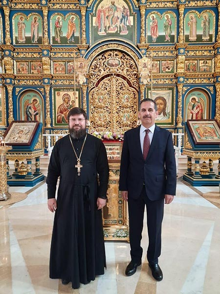 Перед встречей с главой Казахстанского митрополичьего округа посол Иордании посетил Успенский кафедральный собор, где для высокого гостя благочинный приходов столицы Казахстана архимандрит Сергий (Карамышев) провел экскурсию. Отец Сергий рассказал Юсефу Абдельгани о строительстве и благоукрашении храма, о росписи стен и сводов, выполненной артелью мастеров-изографов из города Палех (Россия, Ивановская область), создании резного позолоченного иконостаса и киотов, изготовленных резчиками художественно-производственной мастерской имени Феодора Стратилата (Россия, город Кострома) в традициях XVII века, и украшенного иконами, написанными Заслуженным художником Российской Федерации С.Н. Соколовым. Благочинный подчеркнул, что Успенский собор посещали видные государственные, религиозные и общественные деятели, в числе которых Святейший Патриарх Московский и всея Руси Кирилл; Президент России В.В. Путин; Блаженнейший Патриарх Иерусалимский Феофил III; президенты стран и главы правительств.